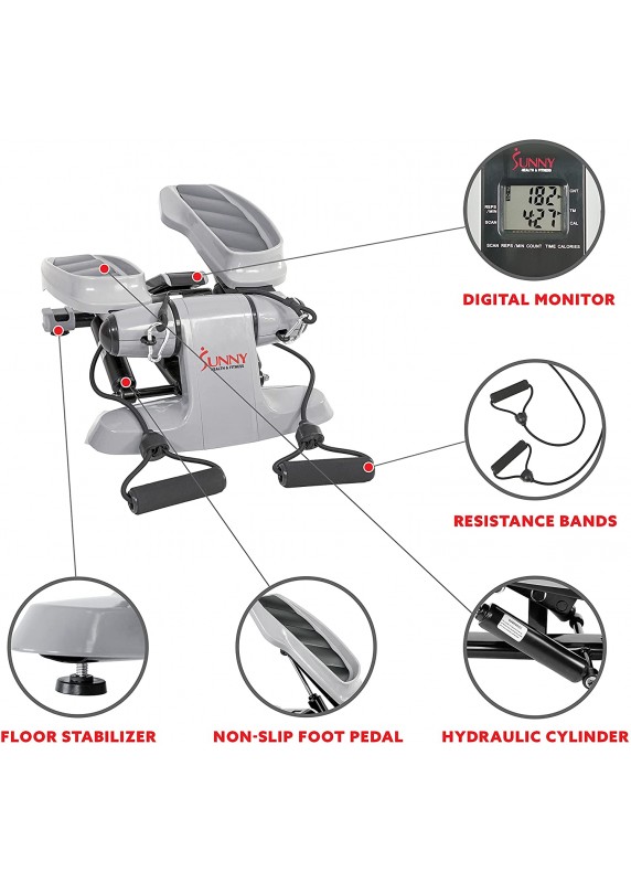 Sunny Health & Fitness Versa Stepper Step Machine w/Wide Non-Slip Pedals, Resistance Bands and LCD Monitor - SF-S0870