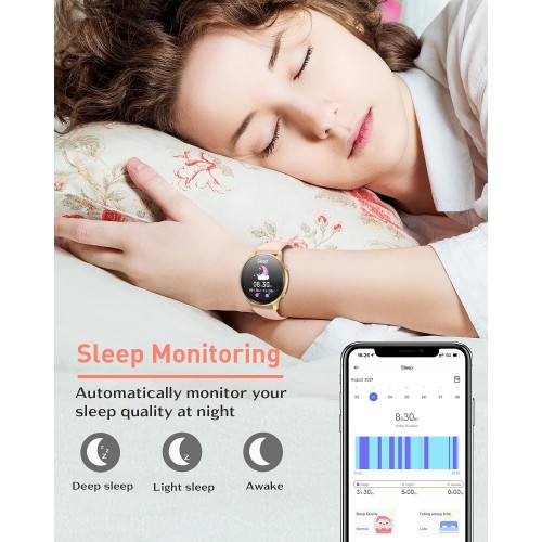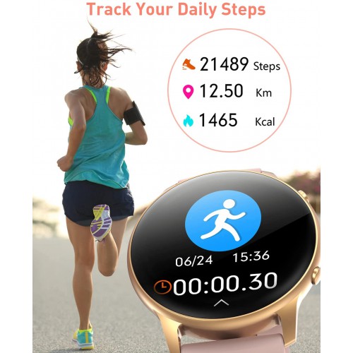 • гЂђFitness TrackingгЂ‘The fit watches for women can track your steps, walking distance and calories burned throughout the day. You can set a step goal. The watch also has 8 exercise modes to track your various exercise data and view the results of each exercise.