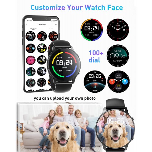 • гЂђCustomize Your Watch FaceгЂ‘ Different occasions require different styles of dial collocation. The smart watches for women contains 100+ dials in the APP, and you can upload your own photo to make your smartwatch more personal. 1.28'' full-color touch screen covered with an aluminum alloy frame, so elegant and comfortable to wear.