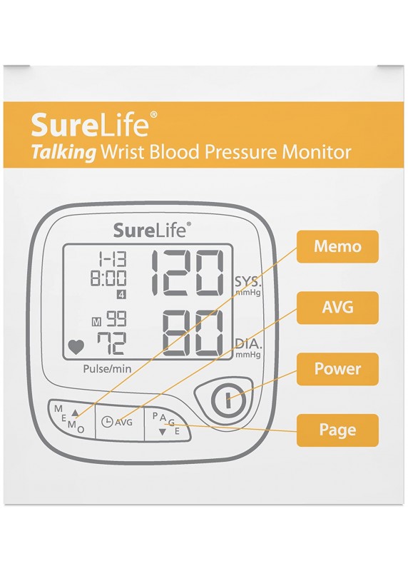 SureLife premium talking wrist blood pressure monitor. Talking. Fully automatic. Irregular heartbeat indicator.